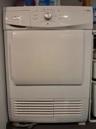 Secadora Whirlpool de libre instalación con una capacidad de 8kg. - Modelo AWZ8479. - Color blanco. - Medidas: A84 x A60 x P55 cm - Panel de control con selector giratorio y botones. - Usada 3 veces. Impecable! - Pequeña marca de línea roja que se ve en las fotos para su valoración. - Extracción de agua por depósito o tubería.