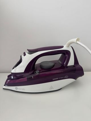 Plancha de vapor Klindo en color morado. Cuenta con una potencia de 3000W y una capacidad de depósito de 510ml. - Potencia: 3000W - Caudal de vapor: 33g/min - Capacidad del depósito: 510ml - Marca: Klindo - Funciona perfectamente