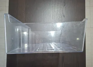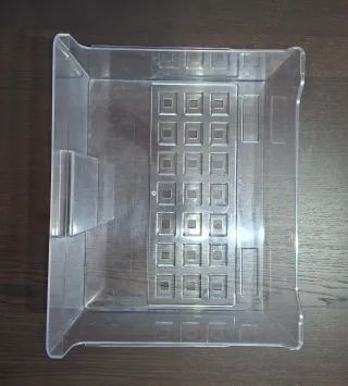 Cajón organizador de plástico transparente para congelador. - Diseño con compartimentos cuadrados. - Asa lateral para fácil extracción.