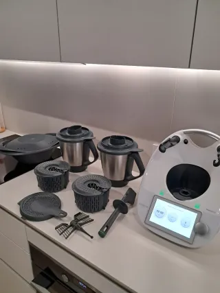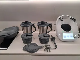 Vendo Thermomix TM6 de Vorwerk en perfecto estado y funcionando perfectamente. Muy cuidada, siempre usada en casa y con todos sus accesorios originales. Incluye: 2 Vasos de acero inoxidable Varoma completo 2 Cestillos Mariposa Espátula Tapas y cubiletes Pantalla táctil grande con acceso a miles de recetas a través de Cookidoo. Es uno de los robots de cocina más completos del mercado: cocina, tritura, cuece al vapor, amasa, emulsiona, etc. Se puede ver y probar sin problema.
