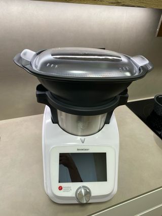 Robot de cocina Thermomix TM5 de Vorwerk. Un ayudante versátil para tu cocina. - Diseño blanco y plateado. - Pantalla táctil a color. - Botón giratorio para control.