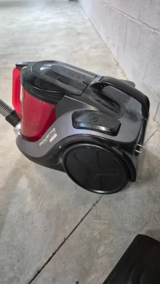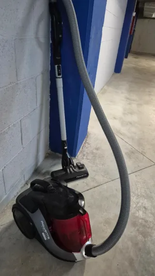 Aspirador Rowenta de tecnología ciclónica y sin bolsa, diseñado para una limpieza eficiente. - Diseño compacto y moderno. - Incluye accesorios para diferentes superficies.