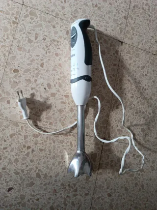 Batidora de mano Braun con función Turbo. - Potencia de 500 Watts. - Diseño ergonómico para un agarre cómodo. - Incluye varios accesorios para diferentes usos.