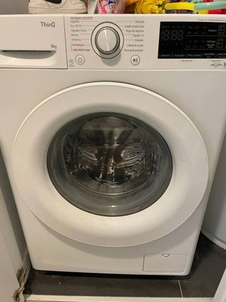 Lavadora LG ThinQ de carga frontal con capacidad de 9kg. Incluye manuales. - Programas de lavado variados. - Función ThinQ para control inteligente. - Diseño moderno y eficiente.