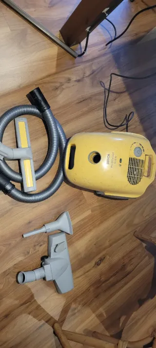 Aspiradora Bosch Pro Parquet de 1800W con varios accesorios. - Color amarillo. - Incluye manguera flexible. - Cepillo para suelos duros. - Boquilla estrecha. - Boquilla ancha
