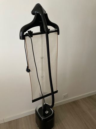 Plancha vertical Rowenta para alisar ropa. Precio original 199€ - Color negro. - Incluye percha de planchado - Manguera flexible.