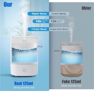 Se puede utilizar como humidificador simplemente añadiendo agua. también, se puede utilizar como un difusor de aceites esenciales añadiendo tus aceites へ utiliza tecnología avanzada de niebla ultrasónica de 5 um para producir una niebla fresca ligera y transpirable utiliza tecnología ultrasónica avanzada para atomizar completamente los aceites con una pérdida mínima con un tanque de 125 ml, este difusor de aceite funciona hasta 8 horas Crea tu ambiente ideal con 7 colores LED: elige un tono fijo o déjalos circular Este difusor eléctrico cuenta con un puerto de alimentación se apaga automáticamente cuando el agua se agota