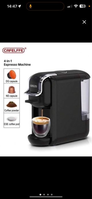 Cafetera Espresso CAFELFFE 4 en 1, versátil y compacta へ Compatible con cápsulas DG y NS Permite usar café en polvo Admite pods ESE Potencia de 1450W Totalmente Automático, Tamaño Pequeño Domiciliario de 0.61 Removible Tanque De Agua De 1450 W De Uso General