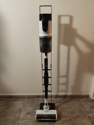 Soporte para aspiradoras Dyson, ideal para mantener tus accesorios organizados. - Diseño moderno y funcional. - Fabricado en metal resistente. - Incluye espacio para varios accesorios.