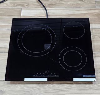 Vitrocerámica de inducción. - Encimera de cristal negro. - Cuatro zonas de cocción. - Panel de control táctil.