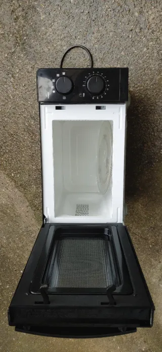 Microondas Taurus en color negro. Un electrodoméstico práctico para tu cocina. - Diseño moderno y compacto. - Puerta con ventana. - Mandos giratorios para ajustar tiempo y potencia.