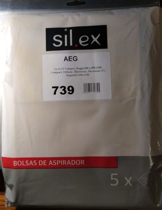 5 bolsas de aspirador silex 739 compatible AEG GR13 a mitad de precio. Nuevas, envase sin estrenar. Precio original 10,70 €