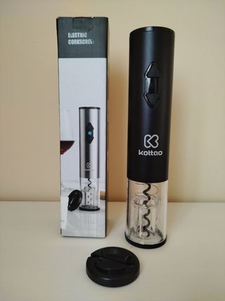 Sacacorchos eléctrico marca Kottao con corta cápsulas. Nuevo, en su caja original. Funciona con cuatro pilas AA (no incluidas). Medidas: 22 x 4,5 cm