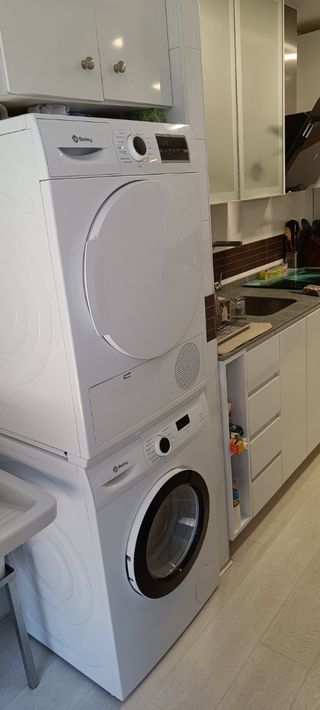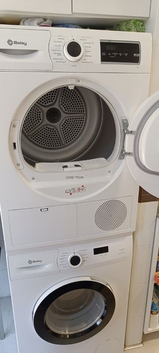 Conjunto de lavadora y secadora de la marca Balay. - Diseño moderno y funcional. - Color blanco.