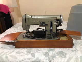 Máquina de coser Wertheim en su base de madera. - Modelo Wertheim. - Base de madera. - Incluye cable de alimentación. - maleta para transportarla .accesorios para bordar