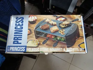 Set de raclette Princess Classic Stone, ideal para disfrutar de comidas gourmet. - Placa de piedra. - Incluye 6 espátulas.