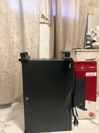 Convector Jata JCCV2314 en color negro. Cuenta con tres potencias de calor y es silencioso, esta nuevo sin usar solo sacado de la caja para hacer las fotos, tiene una abolladura se ve en la imagen 4 - Potencia: 2000 W - Modelo: JCCV2314 - Color: Negro - Silencioso - 3 potencias de calor