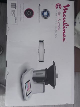 Robot de cocina Moulinex Click & Cook, diseñado en colaboración con Carlos Ríos. - Capacidad de 3,6L. - Potencia de 1400W. - Incluye 600 recetas. Utilizado veces contadas. La vendemos porque nos han regalado otra. Genial para pures de los mas peques.