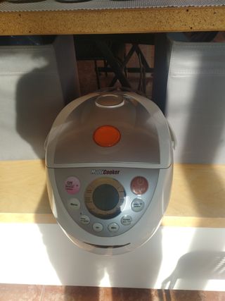 Robot de cocina MultiCooker Superchef en muy buen estado. - Panel de control con funciones Off, Mantener Caliente, Arroz/Pasta, Arroz Express, Navi, Vapor, Caliente, Soup/Guiso, Selección Comida, Reloj Program, Hr, Min, Tiempo Cocción. - Diseño moderno y compacto.