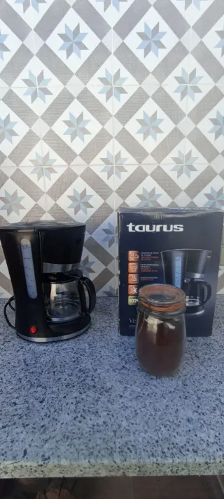 Cafetera de goteo Taurus en color negro. Ideal para preparar café de forma rápida y sencilla. - Jarra de cristal - Indicador de nivel de agua. - Placa calefactora. - Filtro permanente. - pote con café