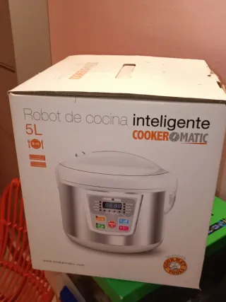 Robot de cocina Cooker Matic con capacidad de 5 litros. Ideal para preparar una gran variedad de platos de forma sencilla. - Panel de control digital con programas preestablecidos. - Cuerpo de acero inoxidable. - Tapa con cierre de seguridad.