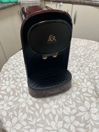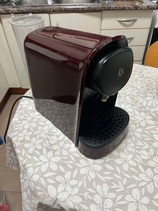 Cafetera de cápsulas L'OR Barista en color burdeos. - Diseño elegante y moderno. - Depósito de agua transparente.