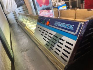 vitrina expositora 6 bandejas en buen estado. funciona perfectamente. Largo: 1'86 m Fondo: 30cm interior Fondo: 41cm exterior Alto: 15cm interior Alto: 24cm exterior