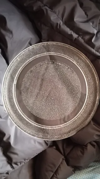 Plato giratorio para microondas de cristal, de aproximadamente 31 centímetros de diámetro. - Ideal para microondas de gran capacidad. - En buen estado, con ligeras marcas de uso. - Se incluye un solo plato.