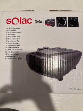Calefactor Solac de 2000W. Diseñado para calentar espacios de forma eficiente. - Potencia de 2000W. - Múltiples ajustes de temperatura. - Diseño compacto y portátil.
