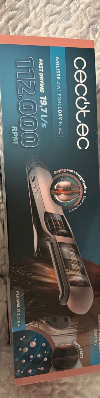 Plancha secador Cecotec Ritualcare Air Lisse 2in1 en color negro. El producto está sin usar, solo se ha abierto la caja. - Secado y alisado rápido. - Tecnología Plasma. - Motor de 106000 rpm.