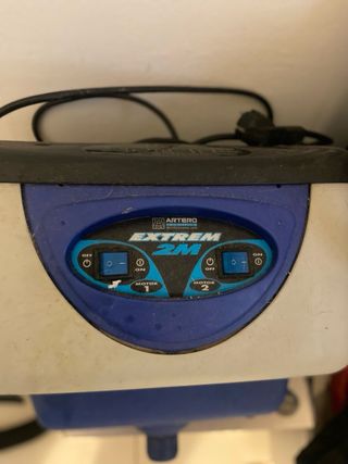 Secadora profesional Artero Extrem 2M para peluquería canina. Cuenta con dos motores para un secado eficiente. - Dos motores independientes. - Controles de encendido/apagado para cada motor. - Diseño robusto y compacto.