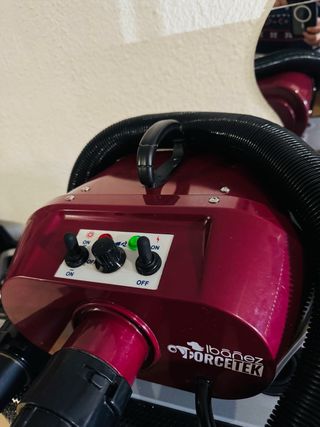 Secador para mascotas, en buen estado. Es azul y tiene una manguera flexible. Marca: Ibañez (productos de peluqueria canina profesional) - Ideal para secar a tu mascota rápidamente. - Diseño ligero y portátil. - Manguera larga y flexible para mayor comodidad.