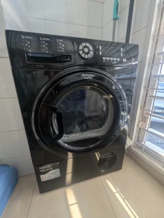 Secadora de carga frontal Hotpoint Ariston en color negro y con capacidad de 8kg. - Diseño moderno y elegante. - Panel de control intuitivo con programas variados. - Puerta con apertura amplia.