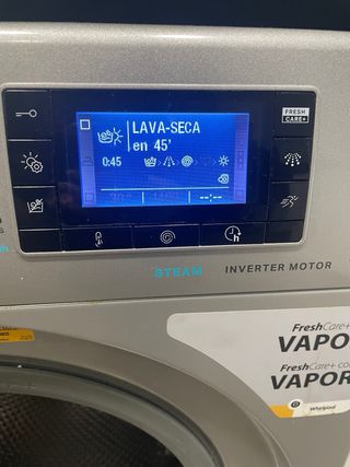 Lavadora secadora Whirlpool en color plata. Cuenta con tecnología de vapor para refrescar y eliminar olores. - Capacidad de lavado de 11 kg y secado de 7 kg. - Motor Inverter. - 17 programas - Función FreshCare+ con vapor. - Garantía de 10 años en el motor. Se vende por mudanza. Recogida en Delicias, Madrid. Hay ascensor.