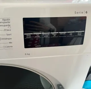Secadora Bosch Serie 6 (WQG24500es) en perfecto estado y aún en garantía - Capacidad de 9 kg. - Tecnología SelfCleaning Condenser. Con ticket de MediaMarkt de diciembre de 2023, por lo que aún le queda aproximadamente 1 año de garantía. Es una secadora con bomba de calor, por lo que es muy eficiente energéticamente. Tiene todas las funciones, como luz interior, condensador autolimpiante, etc. El modelo todavía se vende en MediaMarkt por 599 €. Se vende porque el cierre de la puerta se rompió y Bosch tardó 2 semanas en entregar una puerta nueva, así que tuvimos que comprar otra secadora mientras tanto. A recoger en Diagonal Mar