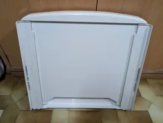 Kit de apilamiento Wpro SKS101 para montar lavadora y secadora en torre. - Con bandeja extraible. - Compatible con la mayoría de lavadoras y secadoras de carga frontal de 60x60 cm. - Incluye correa de seguridad para una fijación firme. - Color blanco. Usado pero en buen estado. Solo falta el embellecedor de la cincha de la correa de seguridad, que se rompió al desmontarlo. Pero era una pieza cosmética, su única función era tapar la cincha metálica de la correa.