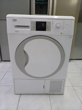Secadora de ropa Beko de carga frontal. - Capacidad de 8 kg. - Color blanco. - Panel de control con programas. - Puerta redonda. - Patas ajustables. SECADORA COMPRADA EN EL MES DE MAYO DE 2025. SE HA UTILIZADO SOLO UNAS 10-20 VECES. AHORA, POR MUDANZA NECESITAMOS UNA SECADORA DE CONDENSACIÓN, YA QUE NO PODEMOS SACAR EL TUBO AL EXTERIOR. LA COMPRAMOS POR 299€.