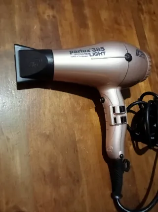 Secador de pelo Parlux 385 Power Light. - Tecnología Ionic & Ceramic. - Diseño ligero y ergonómico. Funciona perfectamente, al pararlo suena un ruido creo que son pelos.