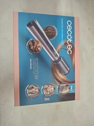 Secador y moldeador Cecotec Ceramicare 2in1 Airglam Black. - Potencia de 1400 W. - Motor Brushless. - Tecnología Coanda. - Revestimiento Ceramic and Keratin. - Incluye 2 cabezales cilíndricos. No está precintado pero no tiene uso.
