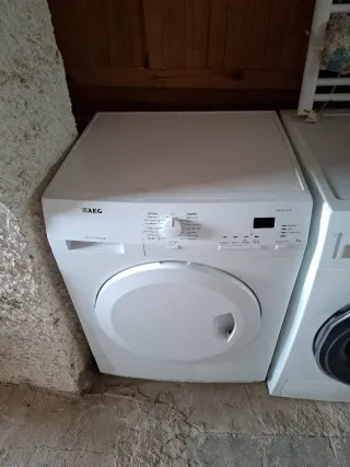 Secadora de ropa AEG de 7 kilos, sin tubo de condensación.. - Color blanco. - Panel de control con programas. - Puerta frontal redonda. - Como somos tienda de segunda mano, damos tres meses de garantía. Posibilidad de llevarla a domicilio por la zona de Valls.