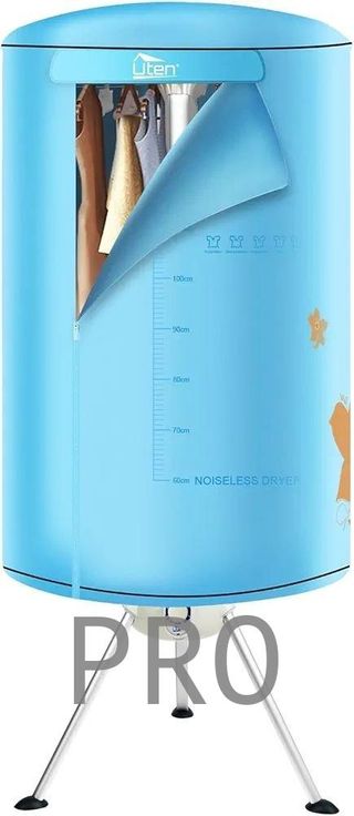 Secadora eléctrica portátil de la marca Uten. Ideal para secar ropa de forma rápida y eficiente. - Diseño compacto y ligero. - Fácil de montar y desmontar. - Cubierta de tela resistente.