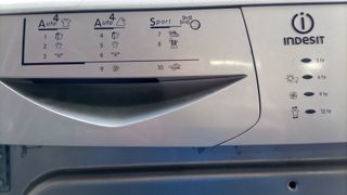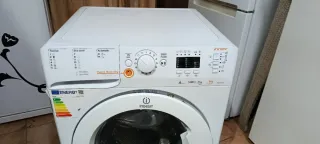 Lavadora y secadora de la marca Indesit. - Color blanco. - Carga frontal. - Panel de control con programas y selector de temperatura.