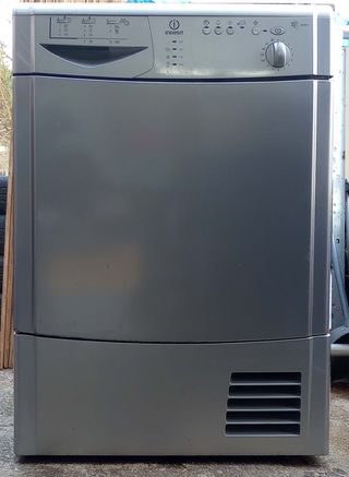 Secadora de ropa Indesit de 7kg. - Color plateado. - 19 programas diferentes de secado. - Inicio retrasado hasta 3 h. - De tipo condensación, no necesita salida de aguas. - Se adjuntan un par de repuestos nuevos.