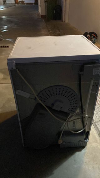 La secadora no gira (debe tener la correa rota) no tiene el tubo.