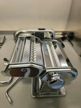 Máquina para hacer pasta fresca en casa, modelo Pastadrive. - moldes para pasta rellena - Incluye secador de pasta - Potencia de 100 vatios. - Diseño cromado brillante. - Incluye accesorios para diferentes tipos de pasta.