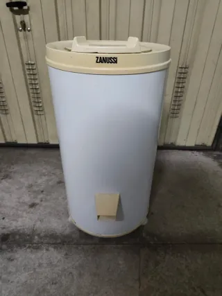 Secadora de ropa de la marca Zanussi. - Color blanco y detalles en beige. - Diseño cilíndrico. - Salida de aire frontal. 30€