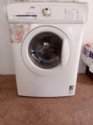 Lavadora blanca de carga frontal Zanussi.modelo Aquafall, capacidad 6kg. 100€ -Secadora 100€ Las dos funcionan bien, las quito por reforma La lavadora tiene un poco de pintura saltada donde esta la pegatina de las flores
