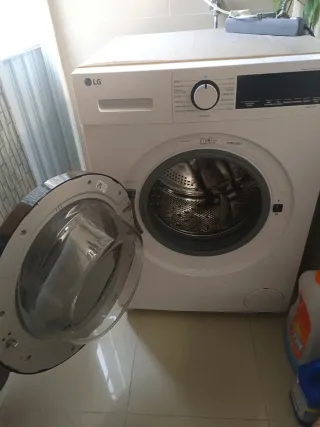 Lavadora de carga frontal LG en color blanco. La puerta se abre hacia la izquierda.esta prácticamente nueva es de 9 kilos la vendo por cambia por qué quiero lavadora con secadora - Diseño moderno y elegante. - Panel de control intuitivo.