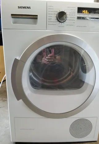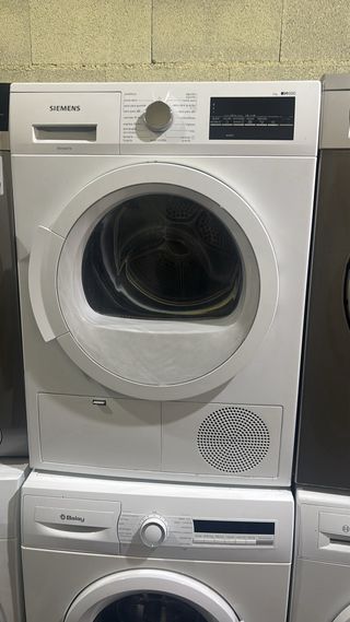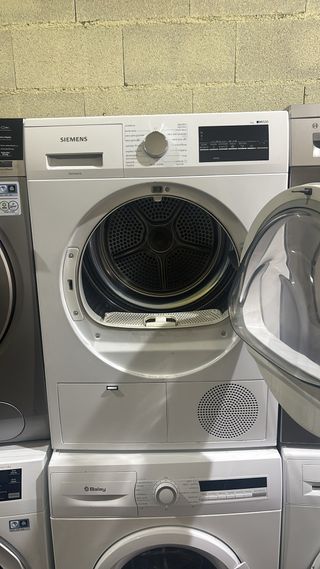 Secadora Siemens de carga frontal con capacidad de 8kg. - Tecnología de bomba de calor. - Color blanco. •SEGUNDA MANO •Funcionando correctamente •Garantía de 3 meses Disponemos de gran variedad de marcas, estilos y tamaños más información por mensaje •Ofrecemos servicio de porte e instalación solo en madrid