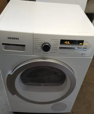 Secadora de carga frontal Siemens. - Programas para sintéticos, algodón y microfibras. - Opciones de secado extra seco y para guardar. - Función SelfCleaning condenser. - Pantalla digital con tiempo restante.